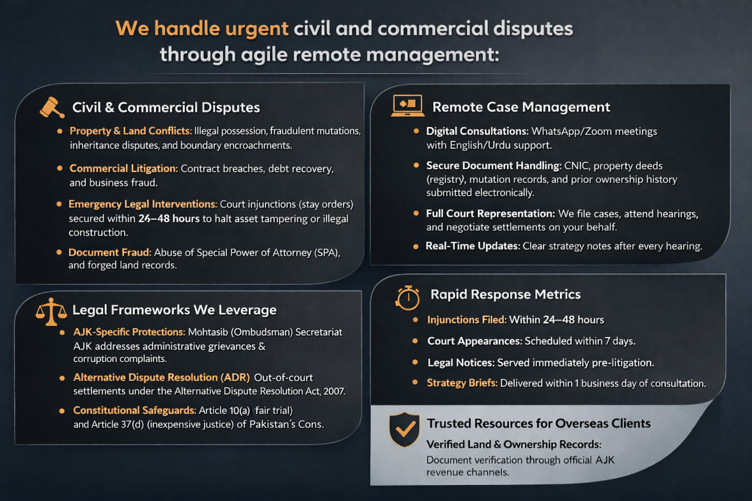 Specialist Legal Services for Pakistan and AJK, delivered by Barristers and Senior Supreme Court Advocates.